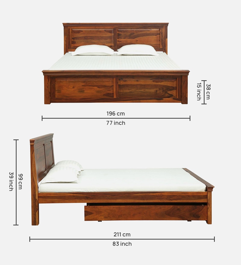 STANFIELD SOLID WOOD KING SIZE BED WITH DRAWER STORAGE IN HONEY OAK FINISH